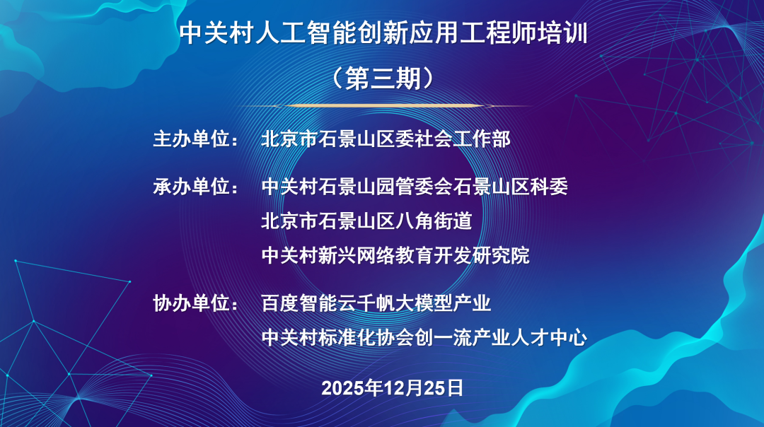 12月25日,由石景山区委社会工作部主办,中关村石景山园管委会区科委、石景山区八角街道、中关村新兴网络教育开发研究院承办,中关村标准化协会创一流产业人才中心和百度智能云千帆大模型产业(北京)创新基地协办的以“AI短视频与AI电影创作” 为主题的中关村人工智能创新应用工程师培训(第三期)专题活动圆满落幕!来自众多高校的学员和石景山区的企业代表齐聚现场,沉浸式解锁 AI 技能,共探就业创业新方向。...